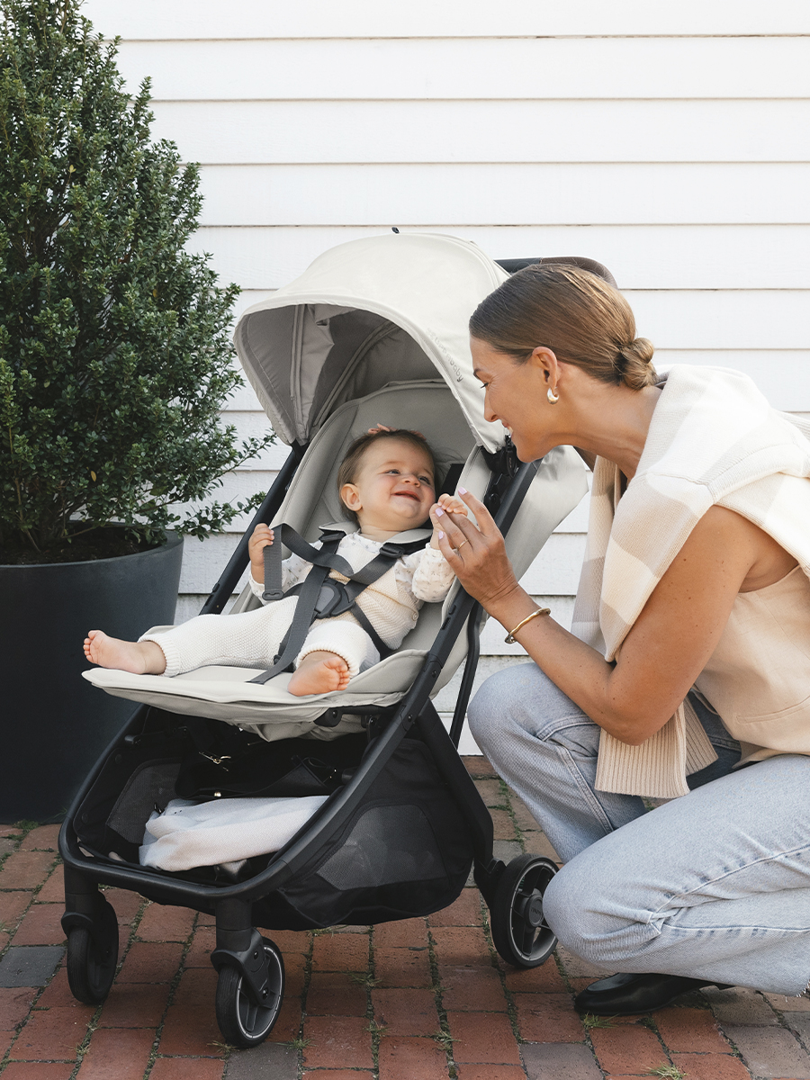 Совместимость с люлькой для новорожденных (приобретается отдельно, для установки требуются адаптеры, приобретаются отдельно). Совместимость с автокреслом Mesa i-Size (для установки требуются адаптеры, приобретаются отдельно). Складывание одной рукой, компактный размер, вертикальное хранение. Максимальная нагрузка на сиденье: 22,7 кг. Многопозиционная спинка с положением для сна. Регулируемая подножка. Капюшон с дополнительное секцией на молнии, защитой от солнца UPF 50+ и вентиляцией. Смотровое окошко. Вместительная корзина (до 9 кг). 4-колесная амортизация. Пятиточечный ремень безопасности. Ручка из натуральной кожи. Легкий вес и удобство переноски. Разложенный вид (ДхШхВ) - 45 х 75 х 105 см Собранный вид (ДхШхВ) – 25 х 43.5 х 55 см Сиденье – ширина – 35 см, длина – 88 см, высота спинки – 54 см, высота подножки – 14 см. Ширина передней колесной базы – 29 см